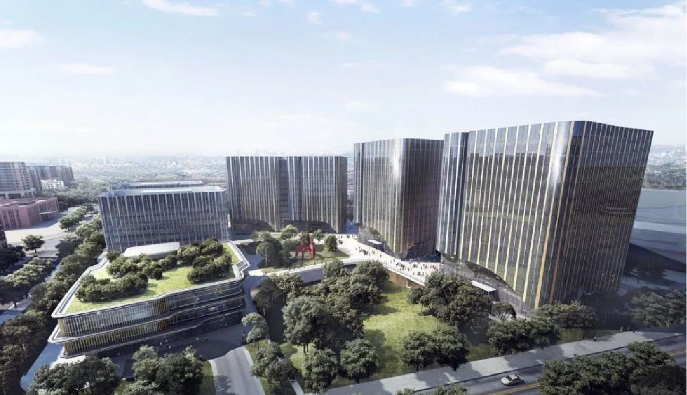 科技園項(xiàng)目一期總建筑面積約22.5萬平方米,包含6棟研發(fā)樓和2層地下車庫(地下共3層,一二期地下相互聯(lián)通),還設(shè)有下沉廣場和商鋪,敞亮的下沉廣場將所有建筑連在了一起。T6樓設(shè)置了戶外屋頂花園,特別鋪設(shè)